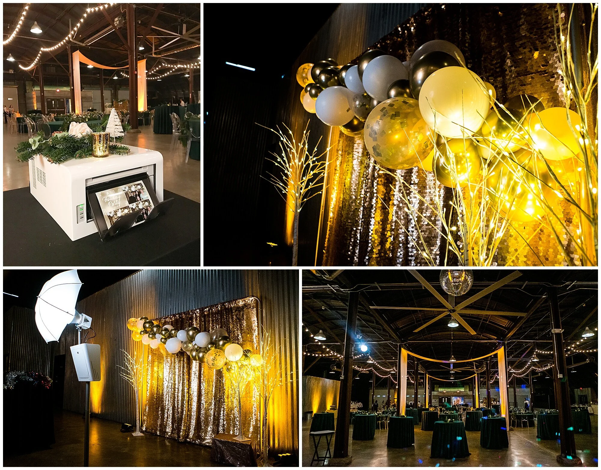 We love that they opted for the sparkling gold backdrop and went all out with the props. Their guests had so much fun in the booth and got a great keepsake out of it!